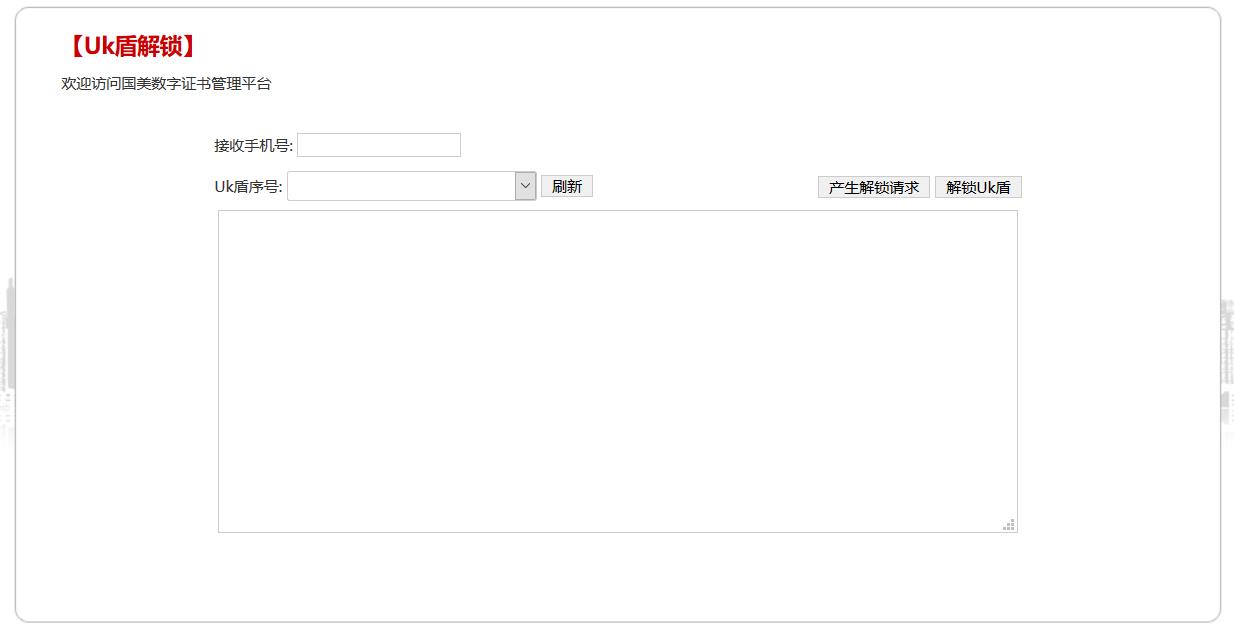 插入锁定的Uk盾,点击"刷新"按钮,刷新出当前Uk盾后,点击"产生解锁请求(忘记口令)",这时,接收手机号就会收到Uk盾解锁/忘记口令短信,其中有解锁/忘记口令需要的解锁码。