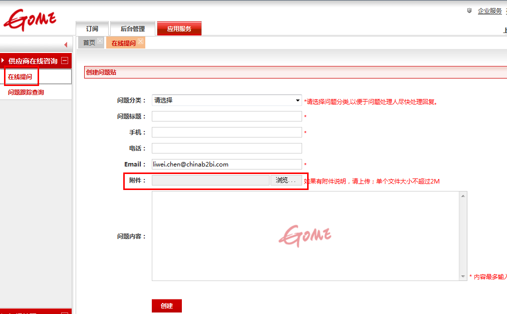 第三步:将盖好公章的申请表扫描件,在ECP平台的"应用服务-在线提问"上提交申请上传申请表;